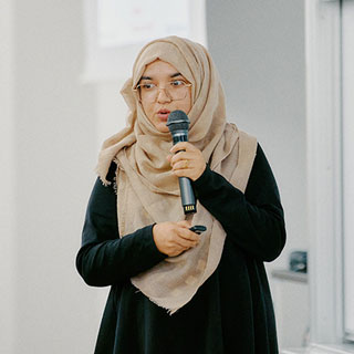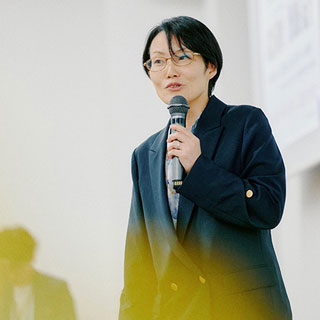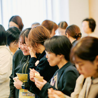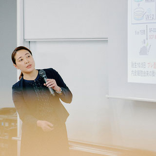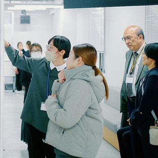 ランチ交流会には約60名が参加し、和やかな雰囲気の中で交流が行われました。各テーブルには国際女性デーの象徴のひとつであるミモザの花が飾られ、会場を華やかに彩りました。大平副学長から熊本大学ブーフーウー(BFW)プログラムの紹介があり、現在同プログラムの支援を受けてオーストラリアで研究中の寺澤有果菜先生とZoomでつなぎ、現地の様子を伺う場面もありました。非常に興味深い時間となりました。また、会場ではBFWプログラムの支援を受けた女性研究者によるポスターセッションが行われ、今回表彰された先生方も加わり、分野を越えた幅広い交流が生まれました。